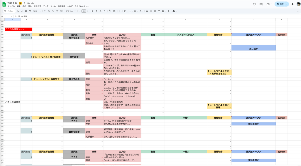 従来は、MOCHIKIN氏のみがUnityを操作し、メンバーそれぞれのアイデアを実装していました。一方で、『都市伝説解体センター』の開発では、ノードエディター機能を活用し、MOCHIKIN氏以外のメンバーも実装を担当する体制を構築。具体的には、あだP氏ときっきゃわー氏がUnityを直接操作し、それぞれセリフの修正やSEやBGMを鳴らすタイミングの調整などを行いました。