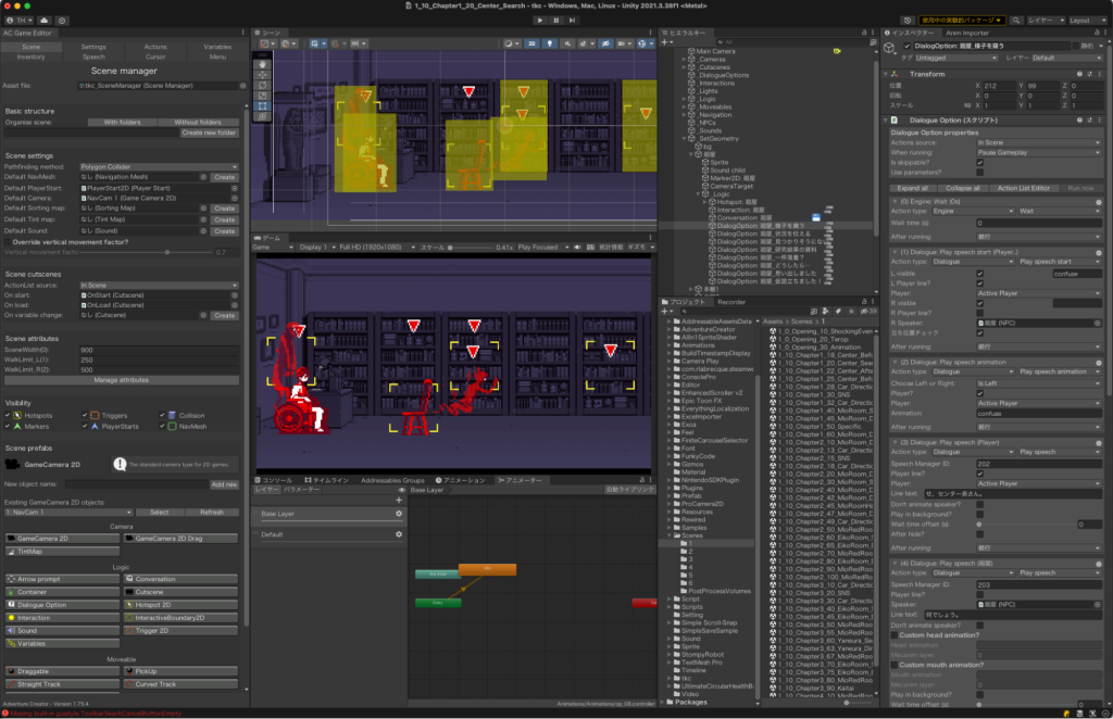 かつては、たびたびエターナル現象に直面していたというMOCHIKIN氏は、「制限した中で遊ぶ」という掟を自らに課すことによって、それを回避。「エターナル現象に陥らない(=エターならない)」開発を実現するための制限」として採用したのが、Unity Asset Store(以下、Asset Store)で販売されているゲームツールキット「Adventure Creator」でした。